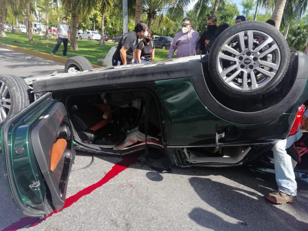 De acuerdo con el reporte oficial un vehículo marca Ford, tipo Explorer, salió del estacionamiento del malecón Las Américas e invadió el carril de un automóvil Minicooper que lo impactó en un costado.