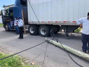 Chetumal, Q. Roo, Lunes 23 de Noviembre del 2020, poderycrítica.- Imprudente conductor de tráiler deja sin servicio telefónico fijo a familias de la colonia Las Casitas de Chetumal al romper tendido eléctrico de Teléfonos de México (TELMEX).