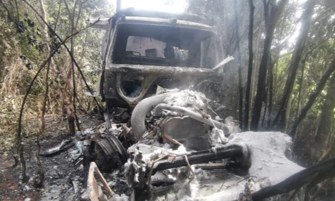 Felipe Carrillo Puerto, Q. Roo, jueves 16 de septiembre de 2021, poderycrítica.- Un tráiler resultó incendiado luego que su conductor perdiera el control, se saliera de la carretera a Polyuc y avanzara unos 200 metros entre la maleza.