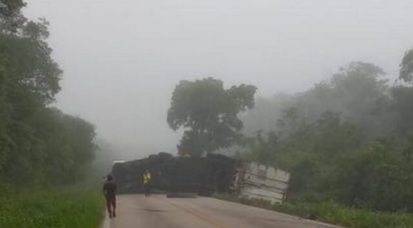 Hasta el momento se desconoce el motivo del accidente, pero se sabe que fue alrededor de las 6 de la mañana cuando la unidad se volcó, quedando atravesada en medio de la vía de comunicación.