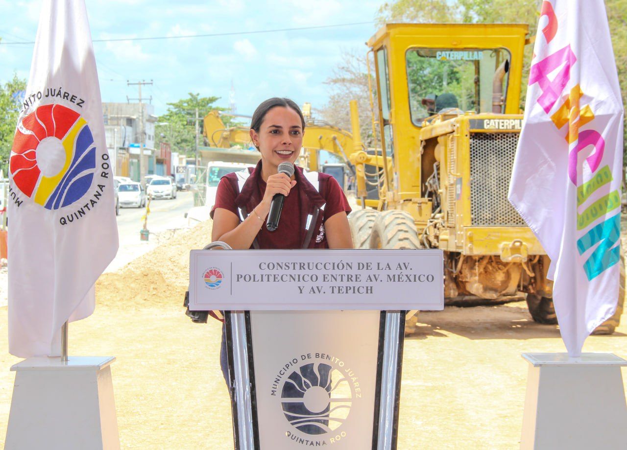 El reencarpetamiento en la avenida Politécnico entre las avenidas Tepich y México, que contará con banquetas, línea podo táctil, guarniciones, pozos de absorción y un camellón central con iluminación tipo led, registra un avance del 67 por ciento, por lo que la presidenta Municipal recientemente afirmó su compromiso de consolidar este proyecto para el beneficio de más de 22 mil Benito juarenses.