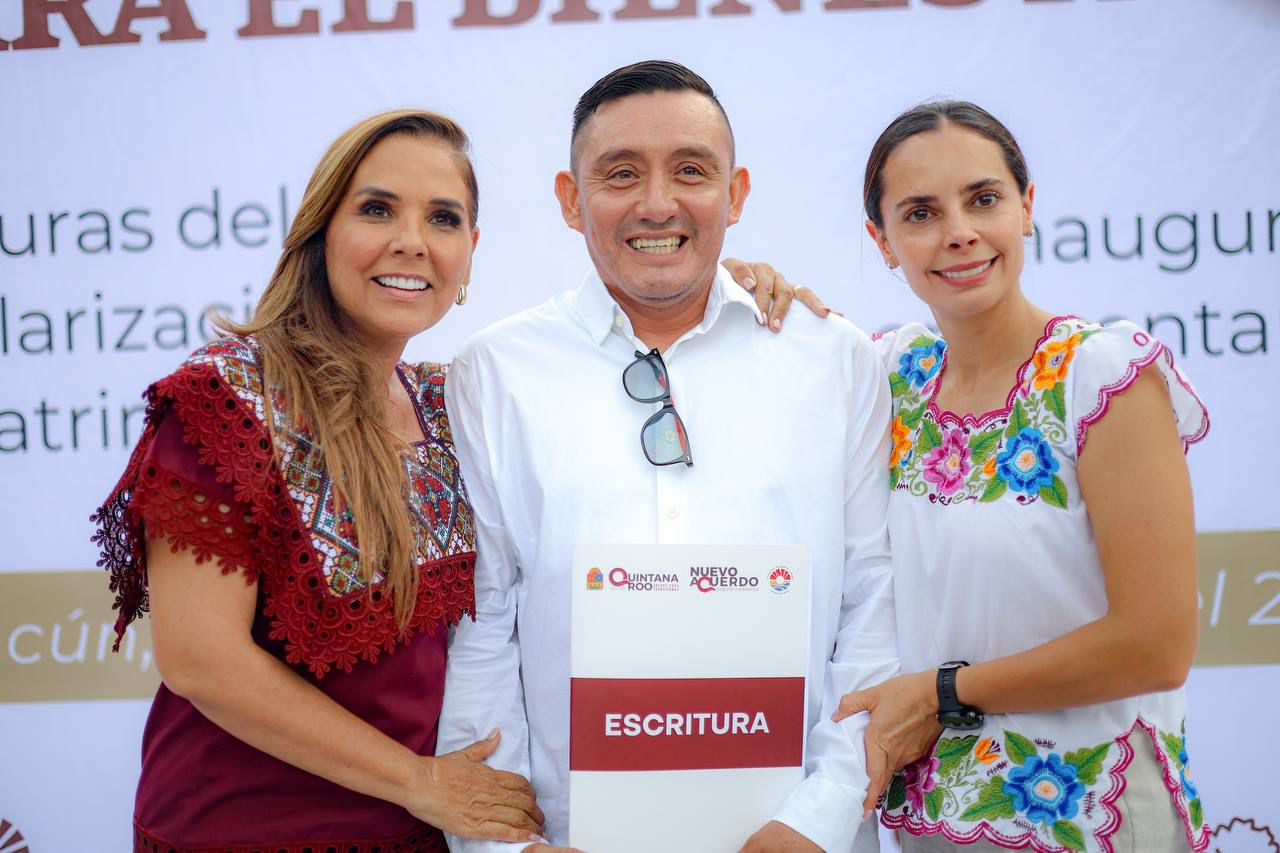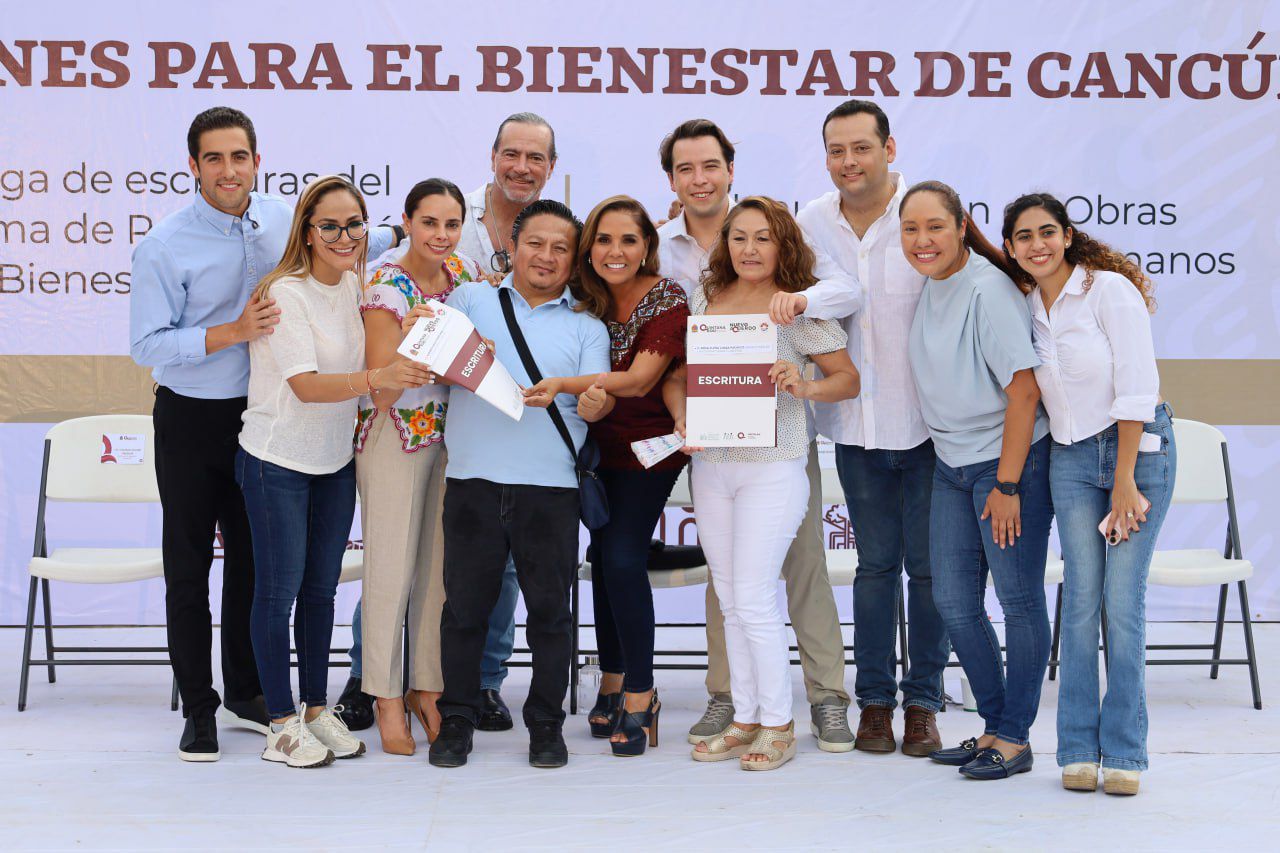 La gobernadora Mara Lezama enfatizó que cuando se trabaja en equipo los resultados son mejores, por ello, señaló que con la entrega de escrituras, y además con la entrega de la construcción de pavimentos y alumbrado público en la avenida Río Hondo, entre avenidas Tules y Chetumal, se invierte en el bienestar de las familias que más lo necesitan y en entregarle a los cancunenses justicia con la certeza de su hogar.