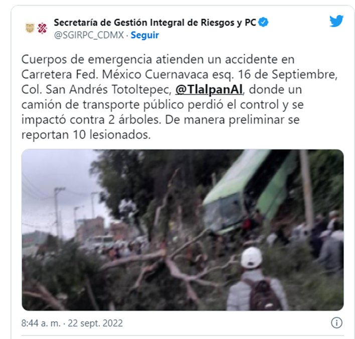 El accidente ocurrió en la Carretera Federal México-Cuernavaca, esquina 16 de septiembre, colonia San Andrés Totoltepec.