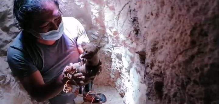 Cozumel, Quintana Roo, sábado 25 de septiembre del 2021, poderycritica.- Fue cerca de las 6:30 de la mañana de ayer viernes que los voluntarios y personal de diversos organismos lograron llegar a un sub nivel del pozo donde se encontraba el perrito atrapado.