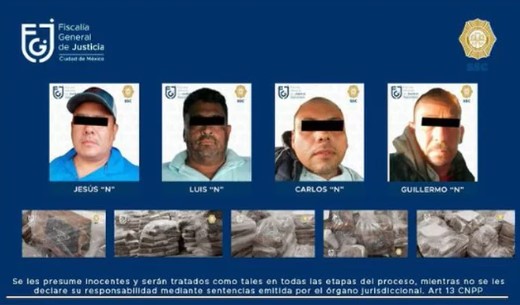 Del mismo modo, bajo el eslogan de “Al margen de la Ley, nada, por encima de la Ley, nadie”, la Fiscalía General de Justicia de la Ciudad de México (FGJ CDMX) dio a conocer la noche del pasado miércoles que buscarán formularles imputación por delitos contra la salud a los cuatro detenidos. No obstante, por el trabajo de inteligencia realizado para lograr el histórico decomiso es probable que autoridades busquen también demostrar la participación de Jesús “N”, Luis ”N”, Carlos “N” y Guillermo “N” en el delito de delincuencia organizada.