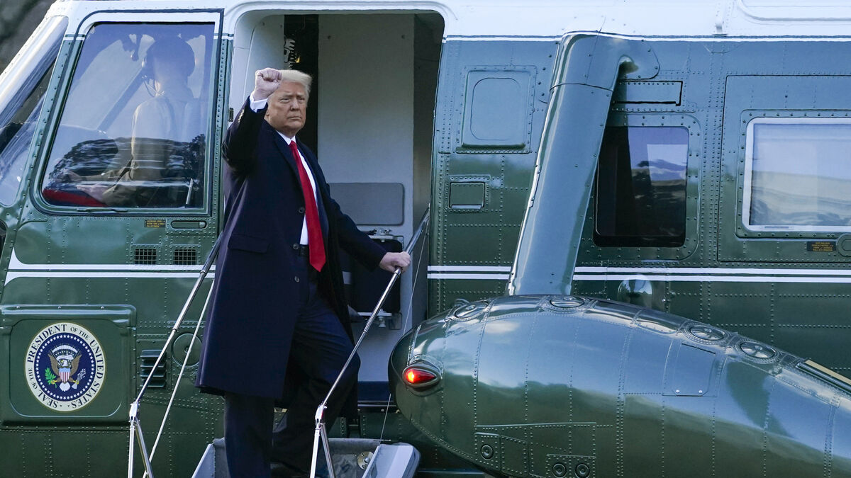 Trump se dirige a la base aérea militar de Andrews (Maryland), a las afueras de Washington, donde celebrará un breve acto de despedida con seguidores, y posteriormente subirá al avión presidencial, Air Force One, por última vez para viajar a su club privado de Palm Beach (Florida).