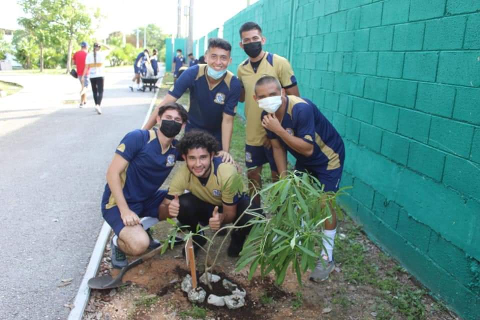 «Siguiendo la visión de nuestro Presidente Víctor Mas Tah de tener un Tulum más verde, junto con los jóvenes de la Tercera División Tulum FC, equipo de la Dirección de la Juventud y el Deporte, la Asociación Civil Sendero Verde y el Club Rotario de Tulum, quienes hicieron la donación de 100 árboles de diferentes especies, sembramos los árboles en la Unidad Deportiva de nuestro municipio, con el objetivo de sensibilizar a los jóvenes con la tarea de reforestar, cuidar su espacio deportivo y conservar el medio ambiente», explicó la presidenta del club de fútbol del noveno municipio, Rifka Queruel.