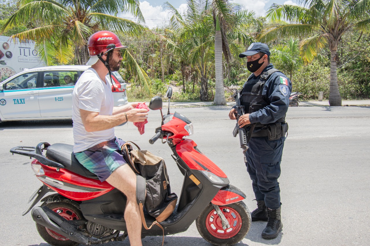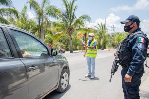 Direcciones del Ayuntamiento de Tulum en coordinación con la Policía Quintana Roo y la Guardia Nacional, supervisan que los usuarios del transporte público y pasajeros de vehículos particulares utilicen cubrebocas y respeten la sana distancia, de igual forma se brinda información a la población y se les exhorta a respetar el aforo en los establecimientos.