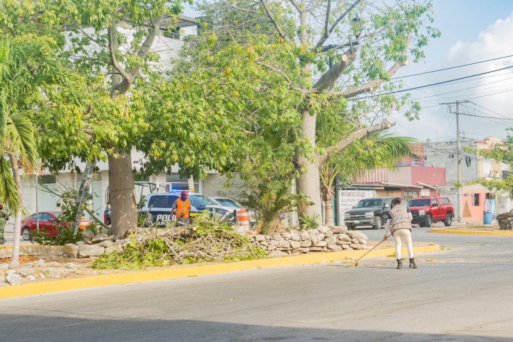 Tulum, Q. Roo, lunes 10 de mayo de 2021, Poderycrítica.- Con el propósito de prevenir y proteger a la población y su patrimonio, autoridades del Ayuntamiento de Tulum continúan con los trabajos de poda y retiro de ramas en calles y avenidas como parte de las tareas de prevención ante la temporada de huracanes que se aproxima, de igual manera se mantiene la cercanía con la ciudadanía a través de información preventiva que se brinda en medios de comunicación, redes sociales y perifoneo sobre qué hacer antes, durante y después de un fenómeno hidrometeorológico.