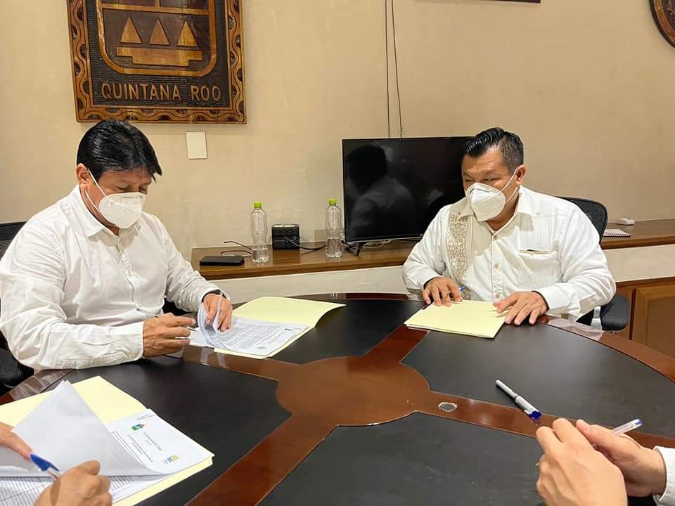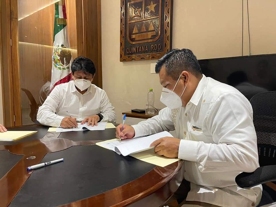 El protocolo de traspaso de un gobierno a otro continuó en la oficina de la Presidencia cuando Marciano Dzul Caamal firmó la documentación correspondiente a la recepción.