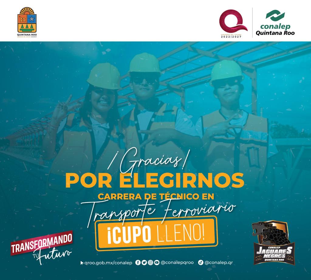 Para la carrera de Técnico en Transporte Ferroviario se abrirán dos grupos en el plantel CONALEP Cancún IV con 52 alumnas y alumnos cada grupo, mientras que en el plantel Chetumal, los grupos serán de 45, quienes serán pioneros en esta nueva carrera técnica, que va de la mano con el proyecto del Tren Maya.