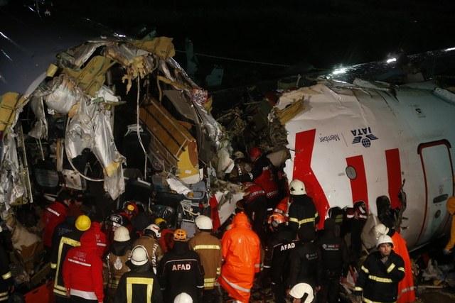 Turquía, 06 febrero; poderycritica.-Un muerto y 157 heridos dejó este miércoles el espectacular accidente de un avión que al aterrizar en un aeropuerto de la ciudad turca de Estambul se salió de la pista y quedó partido en tres pedazos.