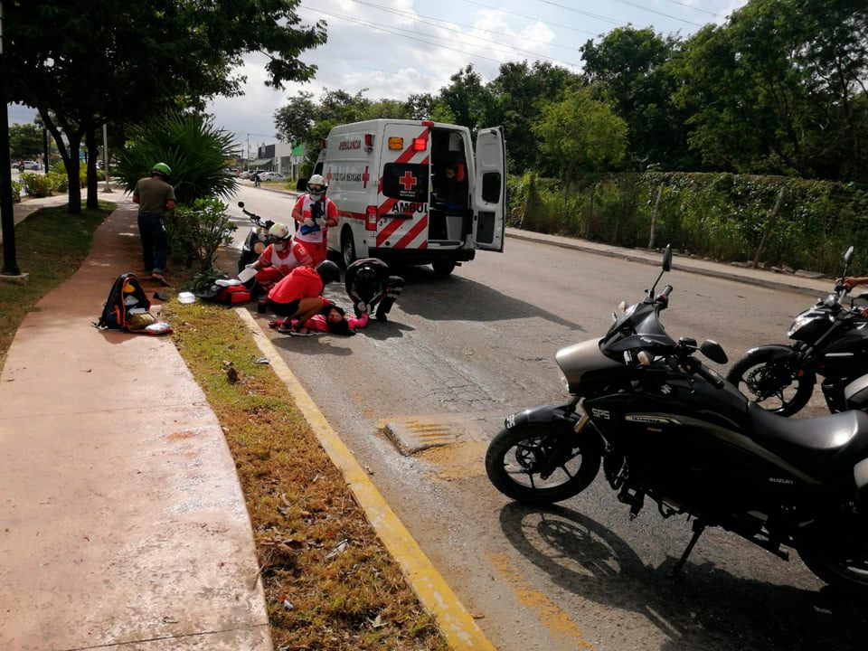 La mujer circulaba en una motocicleta marca Vento sobre dicha avenida y antes de llegar al boulevard Playa del Carmen derrapó por el pavimento mojado y las malas condiciones de la cinta asfáltica.