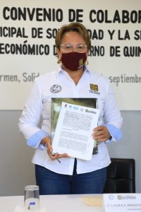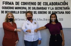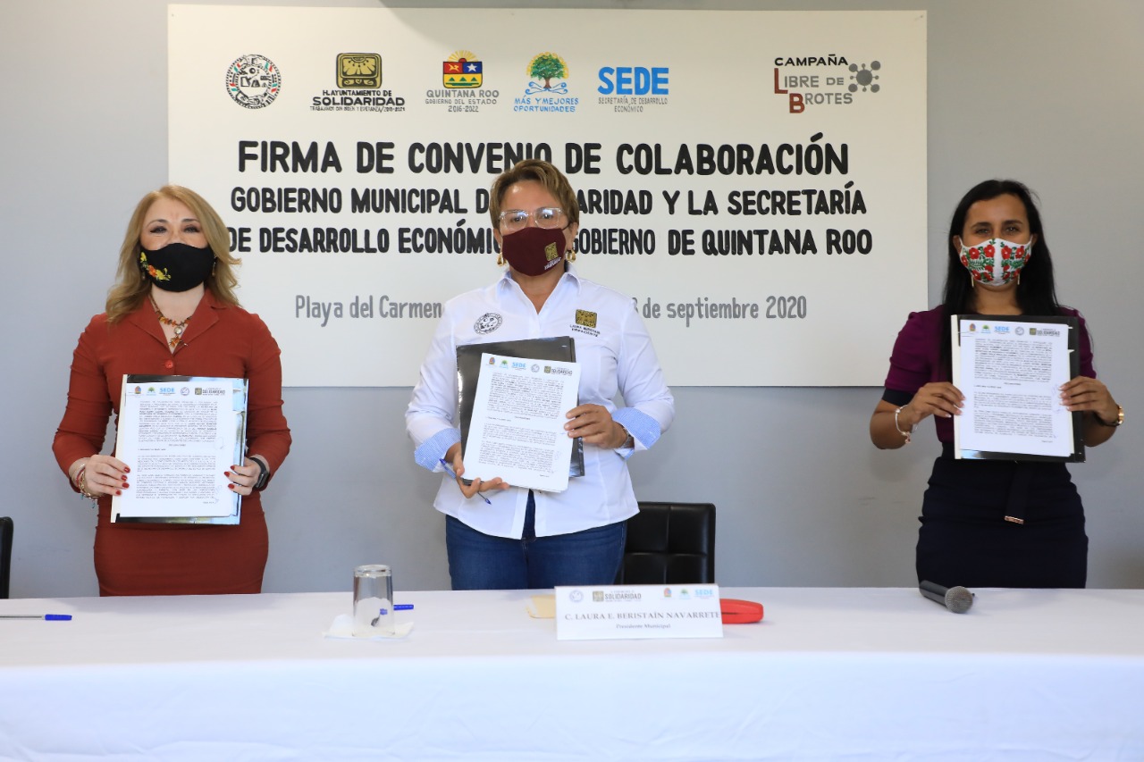 Playa del Carmen, Q. Roo, Lunes 28 de septiembre del 2020, poderycrítica.- Firman convenio de colaboración la presidenta municipal Laura Beristain Navarrete y la secretaría de Desarrollo Económico del estado, Rosa Elena Lozano Vázquez,  con el objetivo de establecer los mecanismos para promover y fortalecer el desarrollo económico en el orden municipal y estatal, en beneficio de las micros, pequeñas y medianas empresas, así como de emprendedores.