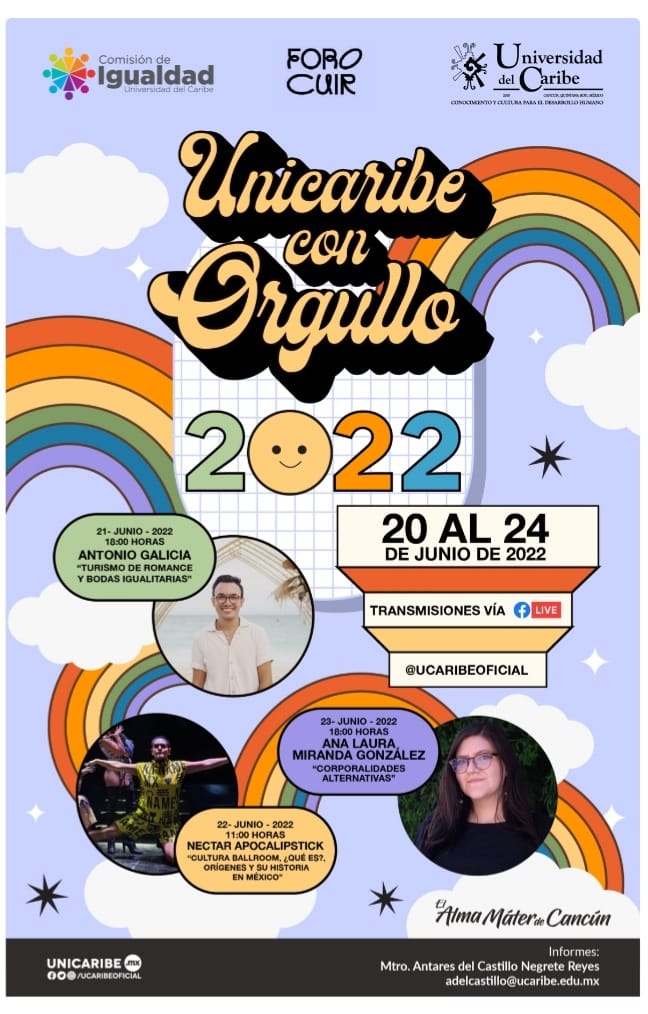 «Unicaribe con Orgullo» incluye una serie de eventos y conferencias que se han realizado a lo largo del mes de junio, organizados por la Comisión de Igualdad de la Universidad del Caribe, para conmemorar el Día del Orgullo Gay, que se celebra hoy 28 de junio, con el objetivo de instar a la tolerancia, la igualdad y la dignidad de las personas gays, lesbianas, bisexuales, trans y más.