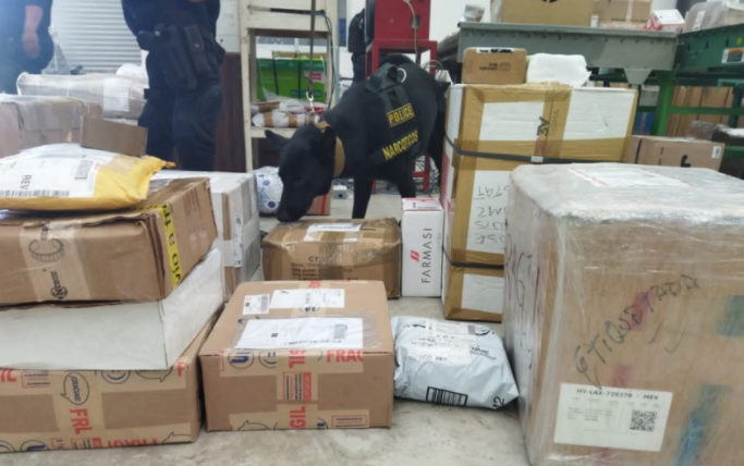 PODER Y CRÍTICA | La Unidad Canina de la Secretaría de Seguridad Pública y Tránsito Municipal de Solidaridad informó que en lo que va del mes, ya fueron asegurados 23 paquetes con más de 32 kilos de narcóticos en empresas de paquetería.