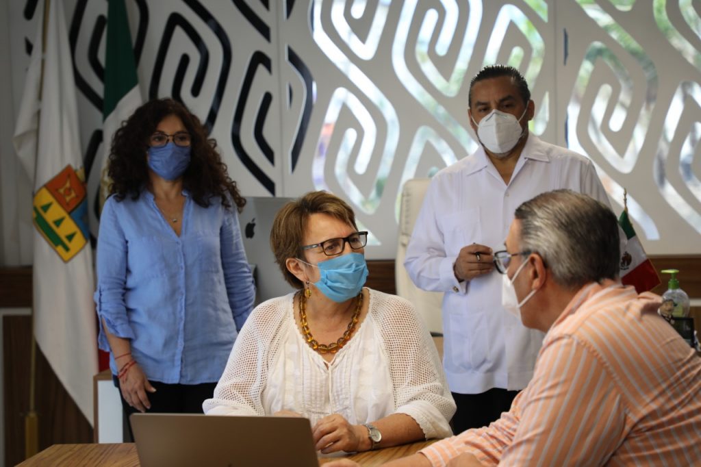 En reunión sostenida con el presidente de la Asociación de Hoteleros de la Riviera Maya (AHRM), Conrad Bergwerf y la presidenta municipal, Laura Beristain Navarrete, analizaron temas referidos al impulso de la promoción del destino, la capacitación a los colaboradores, así como la aplicación de los protocolos para proteger la salud -tanto de los ciudadanos como de los turistas- y que regresen con bien a casa, toda vez que la pandemia por COVID-19 es a nivel mundial.