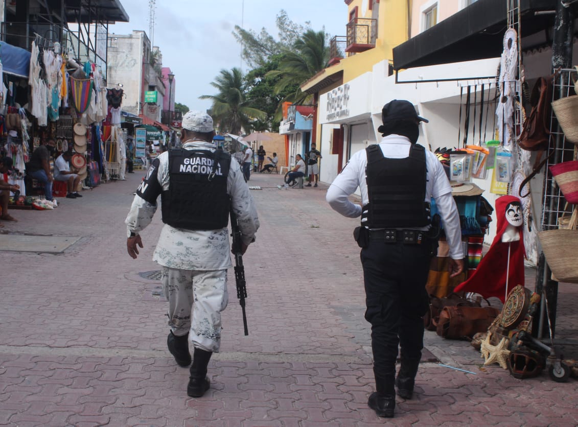 Playa del Carmen, Q. Roo, Lunes 24 de Agosto de 2020, poderycrítica.- Redoblan esfuerzos y presencia policial en la Quinta y Décima avenida con recorridos a pie y vigilancia perimetral la Guardia Nacional y la Secretaría de Seguridad Pública y Tránsito Municipal a fin de garantizar la seguridad de turistas y residentes, en el marco de la reactivación económica durante la Nueva Normalidad reforzando el operativo Fuerza Interinstitucional de Solidaridad (FIS).