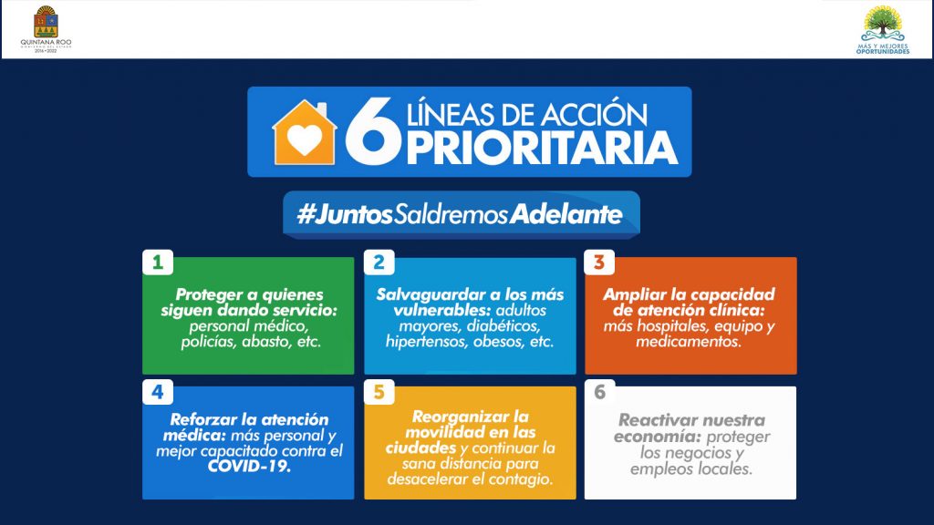 “Estamos de lleno en el escenario de la dispersión comunitaria del coronavirus. Es necesario aplicar medidas más severas para proteger a las personas más vulnerables, quienes sufren de obesidad, diabetes, hipertensión y los de edad avanzada principalmente” expresó el gobernador de Quintana Roo.