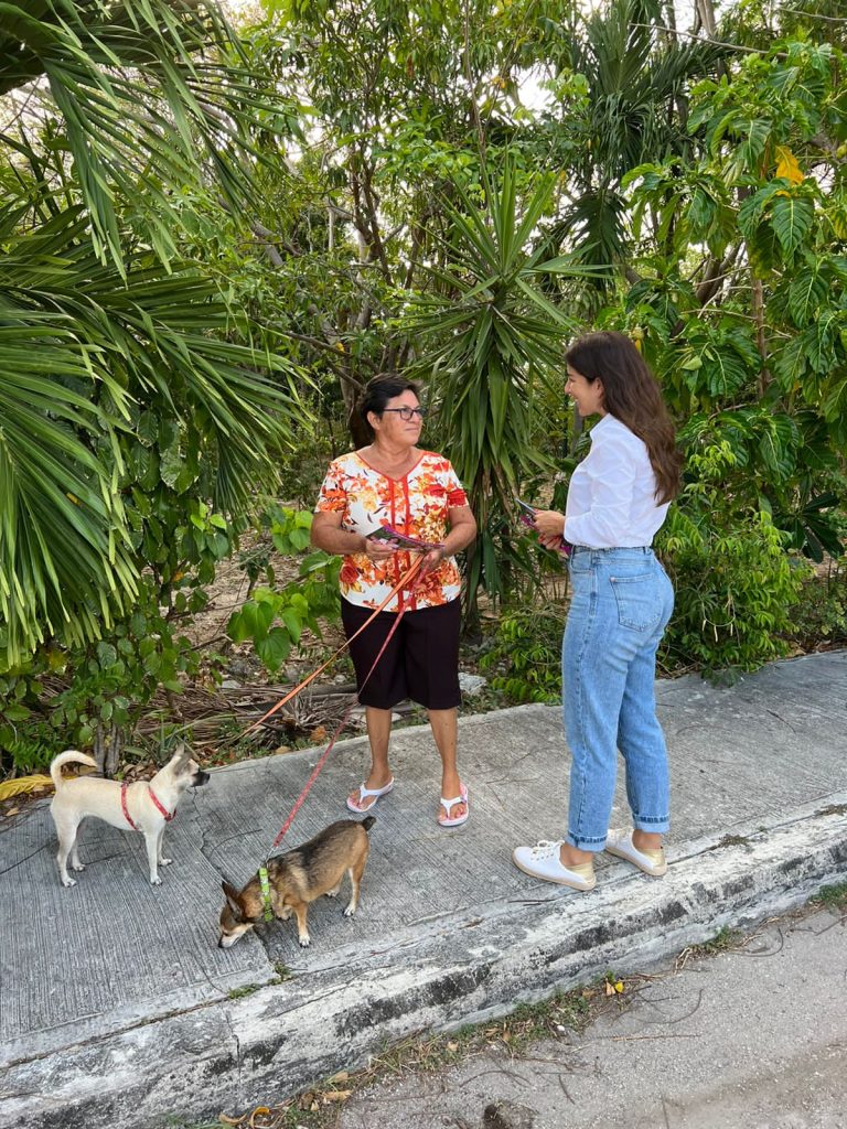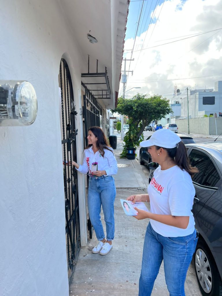 En su recorrido la candidata fue acompañada por vecinos y la candidata suplente Shaila Castro Achach..