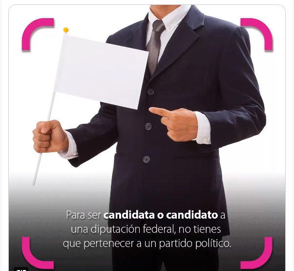 Cabe destacar que las y los aspirantes a candidaturas independientes a diputaciones federales por el principio de mayoría relativa deberán solicitar el registro en fórmula, en donde el propietario y el suplente tendrán que ser del mismo género, aunque en caso de que el propietario sea hombre, podrá tener una suplente mujer.