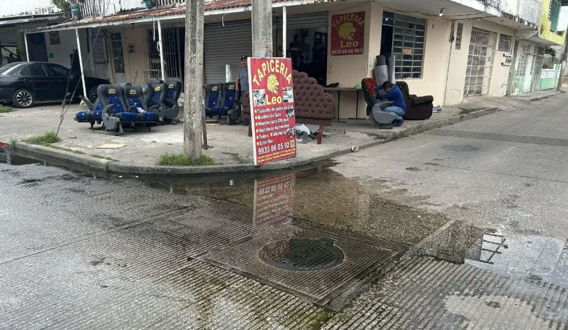 PODER Y CRÍTICA | REDACCIÓN | Habitantes de la colonia 18 de Marzo, en Villahermosa, denunciaron públicamente el abandono en que se encuentran sus calles, afectadas por registros rotos, fugas de agua potable y banquetas deterioradas que representan un riesgo para quienes transitan la zona.
