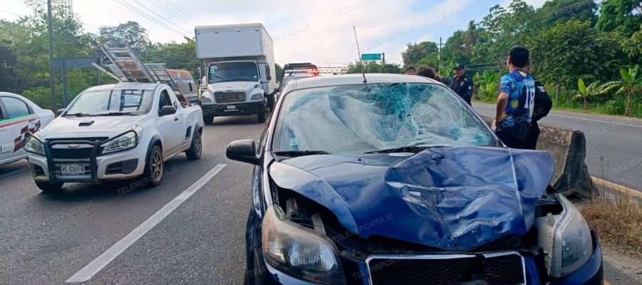 Vehículo embiste a pareja de motociclistas en la carretera Villahermosa-Frontera