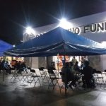A fuera de las instalaciones se colocaron sillas debajo de tres toldos de color azul, para quienes decidan acompañar a los familiares y amigos de la joven víctima de feminicidio.