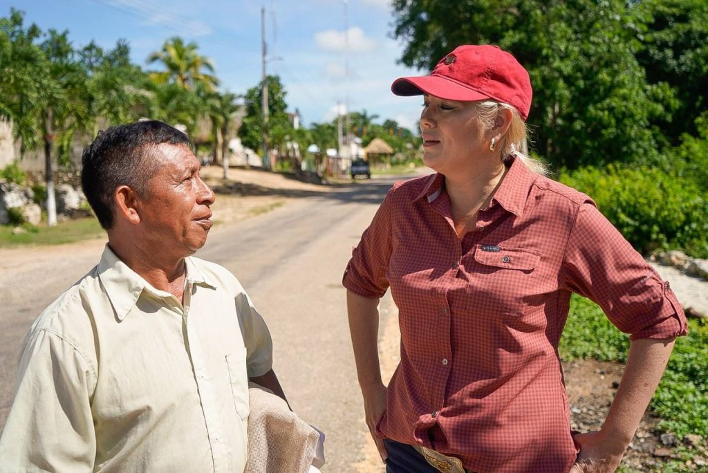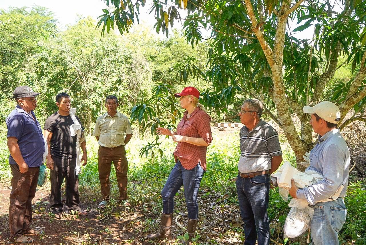 Acompañada por los productores locales Manuel Cetz y Manuel Castro, en su visita a Chankom, Verónica Camino expuso que el Gobierno Federal tiene actualmente en operación el programa Precio Fijo de Garantía, por medio del cual se pretende impulsar la producción de alimentos básicos y fortalecer la economía de los pequeños productores del campo.