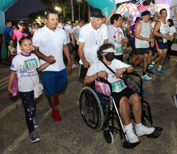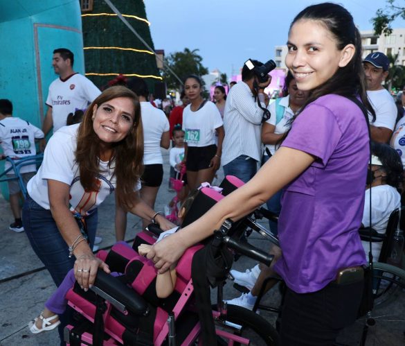 La presidenta del DIF estatal, Verónica Lezama Espinosa, deseó éxito a los participantes de las modalidades de 1 km, 3 km y 5 km, quienes compitieron con sillas de ruedas, a pie y con aparatos funcionales a lo largo del malecón Rafael E. Melgar.