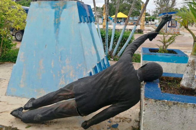 Felipe Carrillo Puerto, Q. Roo, viernes 20 de agosto de 2021, poderycrítica.- Los fuertes vientos que trajo “Grace” a su paso por la zona maya de Quintana Roo, arrancaron la estatua del caudillo de la guerra social maya, Cecilio Chi, instalado en una de las comunidades que fueron bastión de la guerra de castas en este municipio de Felipe Carrillo Puerto.