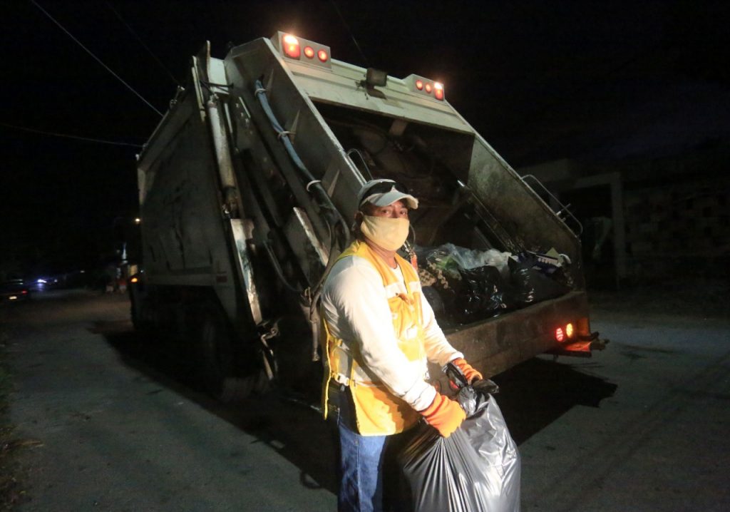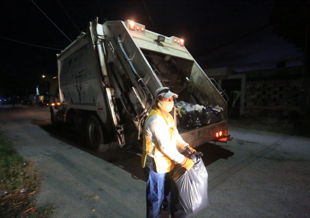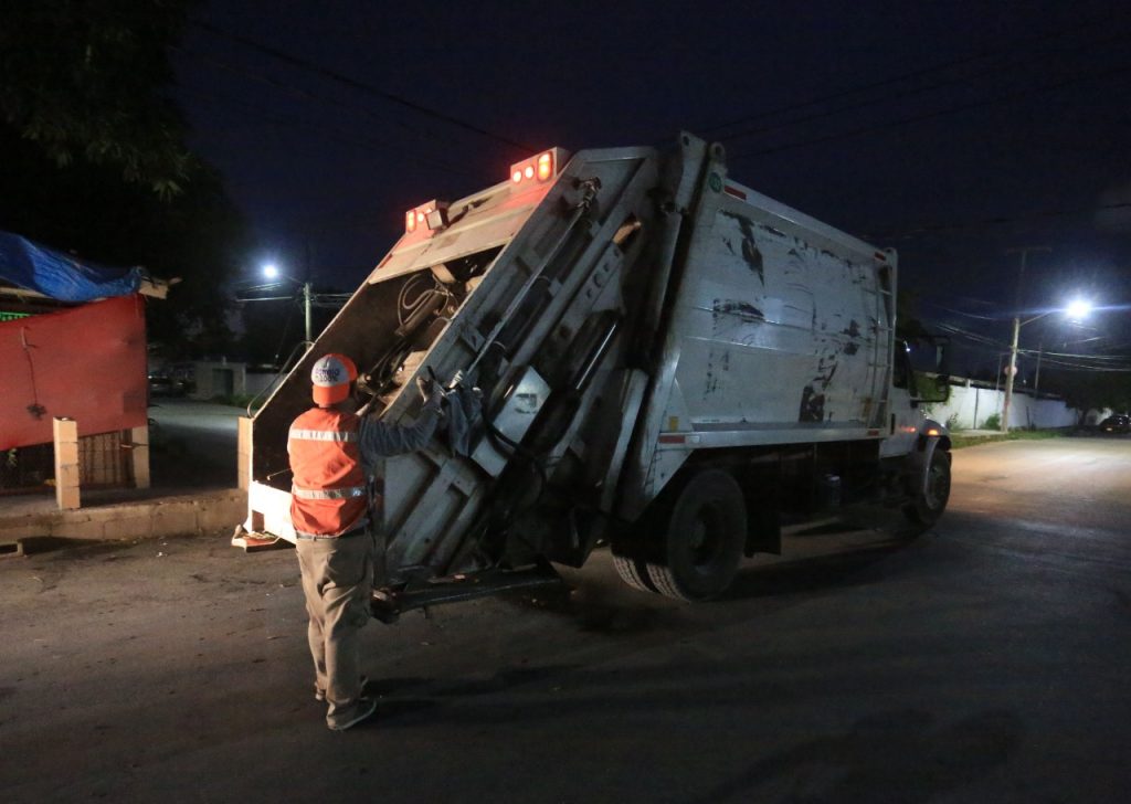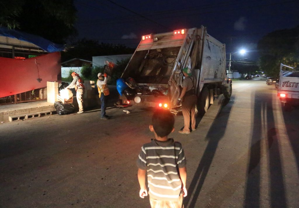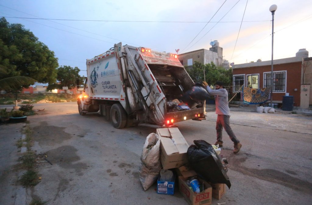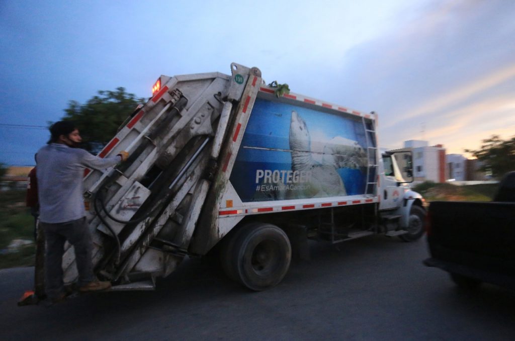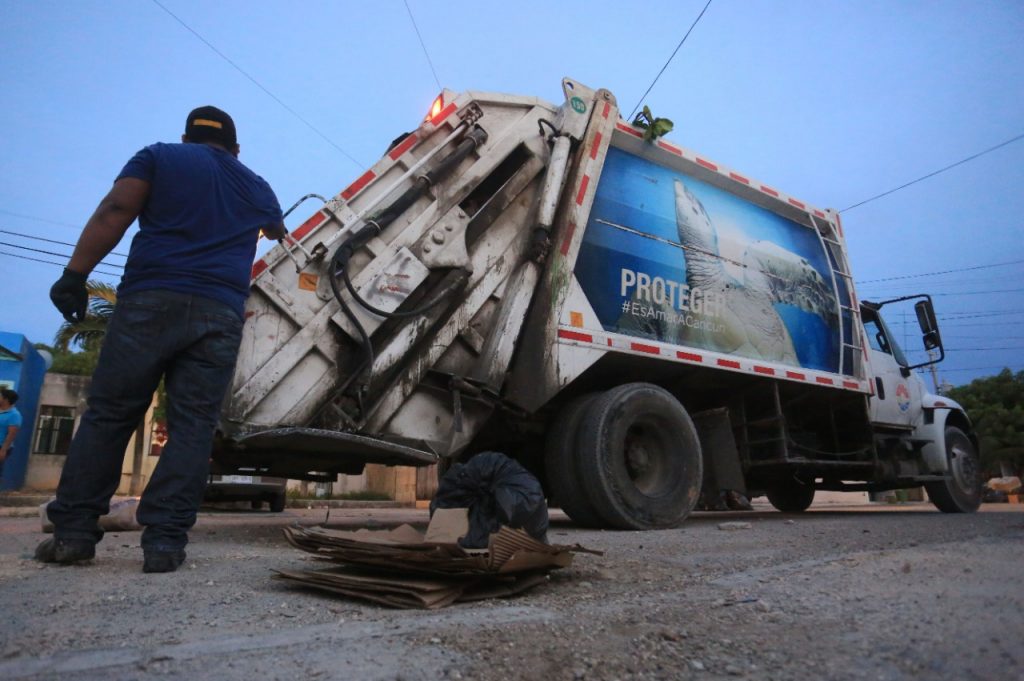 Cancún, agosto 5.- Con el objetivo de asegurar la efectividad en el servicio de recolección de basura a cargo de Inteligencia México, empresa concesionaria de este servicio, el gobierno municipal a través de Siresol, se mantiene vigilante en un intenso operativo de recolección de basura doméstica en diversos puntos de la ciudad.