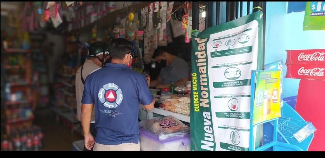 Cozumel, Quintana Roo, Lunes 20 de Julio de 2020, poderycrítica.- A fin de mantener aplanada la curva de contagios de Covid-19, mediante la inspección del cumplimiento de los protocolos sanitarios dictados en el Plan Estratégico de Reactivación Económica de Cozumel, y ante el llamado del Presidente Municipal, Pedro Joaquín Delbouis de reforzar los mensajes de conciencia entre la gente de Cozumel, la Dirección de Protección Civil, en coordinación con el Departamento de Verificación y Ordenamiento Comercial, continúa con sus operativos de vigilancia a comercios de la isla.