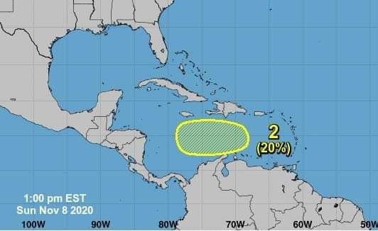 Chetumal, Q. Roo, Domingo 08 de Noviembre del 2020, poderycrítica.- La Coordinación Estatal de Protección Civil informó que se vigila zona de baja presión en el mar Caribe.