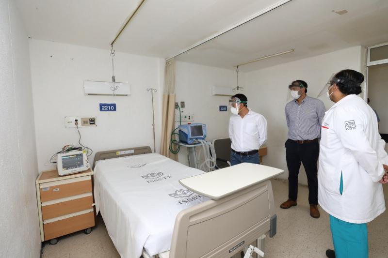 Yucatán, 04 julio; poderycritica.-El Gobernador Mauricio Vila Dosal realizó una visita de supervisión al piso 2 del Hospital Regional Mérida del Instituto de Seguridad y Servicios Sociales de los Trabajadores del Estado (Issste) del Gobierno federal, en donde existen camas sin ser ocupadas hasta el momento y disponibles para atender a pacientes con Coronavirus, en caso de que se requieran. No obstante que es un nosocomio del Gobierno federal, por disposición del Gobernador, se le ha apoyado con insumos, ventiladores, monitores y equipos de protección personal ante esta contingencia sanitaria.