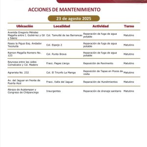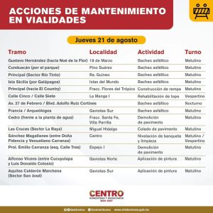 También destacaban que estaban aplicando pintura de tráfico en guarniciones y topes en calles como Calle Aquiles Calderón Marchena, Col. Gaviotas Sur: “Con estas acciones seguimos avanzando en la construcción de un Centro con mejores vialidades y espacios más seguros para todas y todos”, dice la alcaldesa en sus redes sociales.
