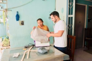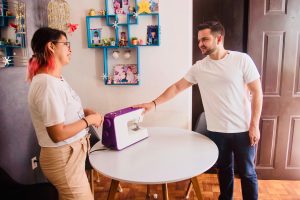 “Soy ama de casa, y aunque mi esposo esté trabajando, necesitamos el dinero. Entonces la idea es que ahora que estoy cerca de la escuela de mis hijos me dedique más a trabajos de costura y pueda tener más ingresos”, comentó Angélica Yisel Vivanco Sánchez, al secretario Pablo Bustamante.