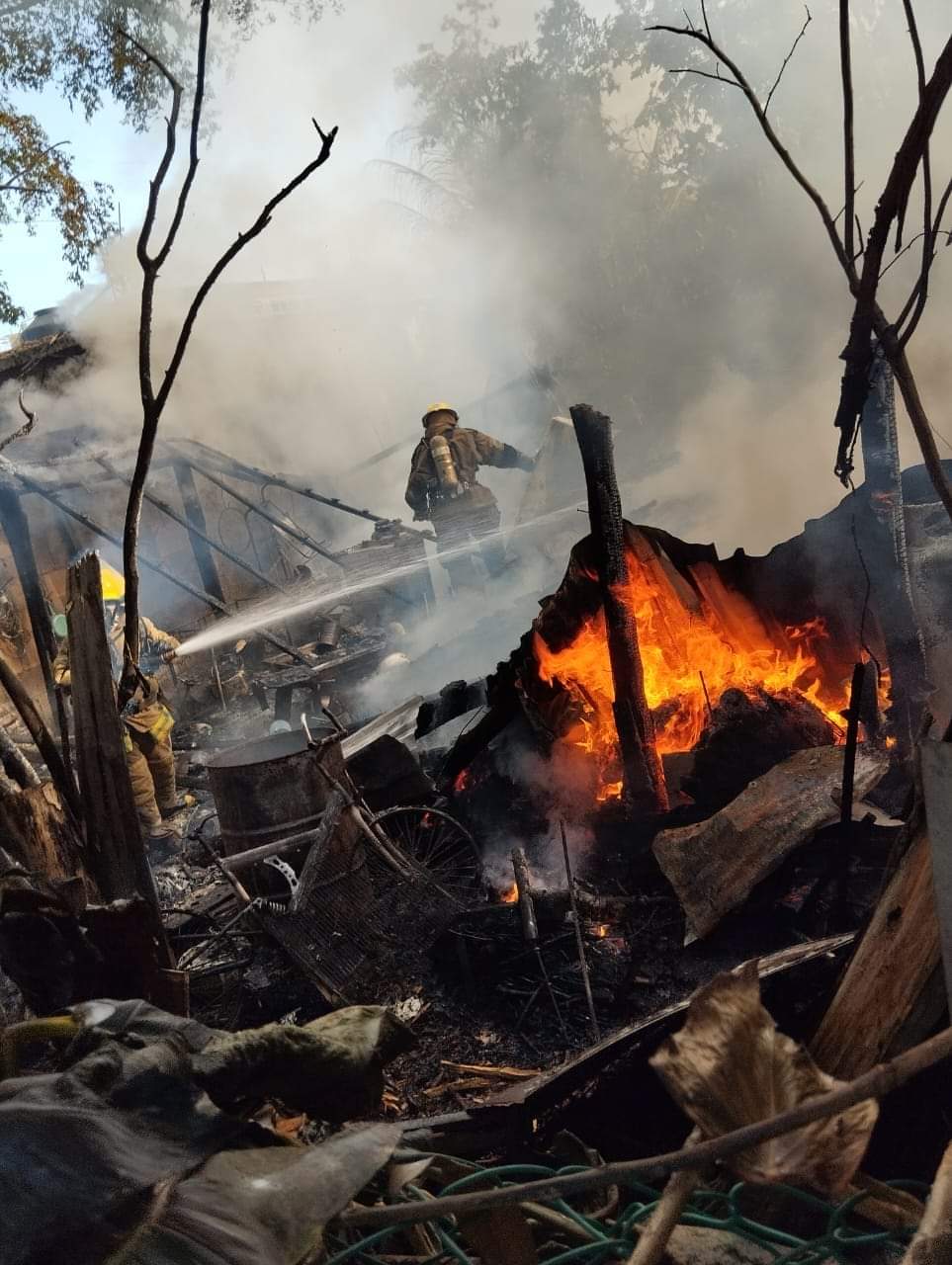 PODER Y CRÍTICA | REDACCIÓN | En pérdida total declararon bomberos a una casa, hecha de madera y láminas, después de que fuera consumida por tremendas llamas; el incendio ocurrió esta mañana en la colonia Nuevo Progreso de esta ciudad, sin que los propietarios salieran lesionados, pero, desafortunadamente, perdieron todas sus posesiones.