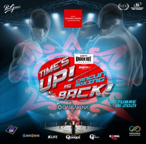 Cancún, Q. Roo, Viernes 17  de Septiembre de 2021, poderycrítica.-  Tras casi un año de inactividad pugilística en la internacional “Oasis Arena Cancún”, las empresas “Cancun Boxing”, “Promociones del Pueblo” y “Boxing Time Promotions”, anuncian su reaparición en alianza con la gala “Time’s up Cancun Boxing is Back” que se disputará el próximo sábado 16 de octubre con importantes contiendas, entre ellas, algunas de campeonatos.