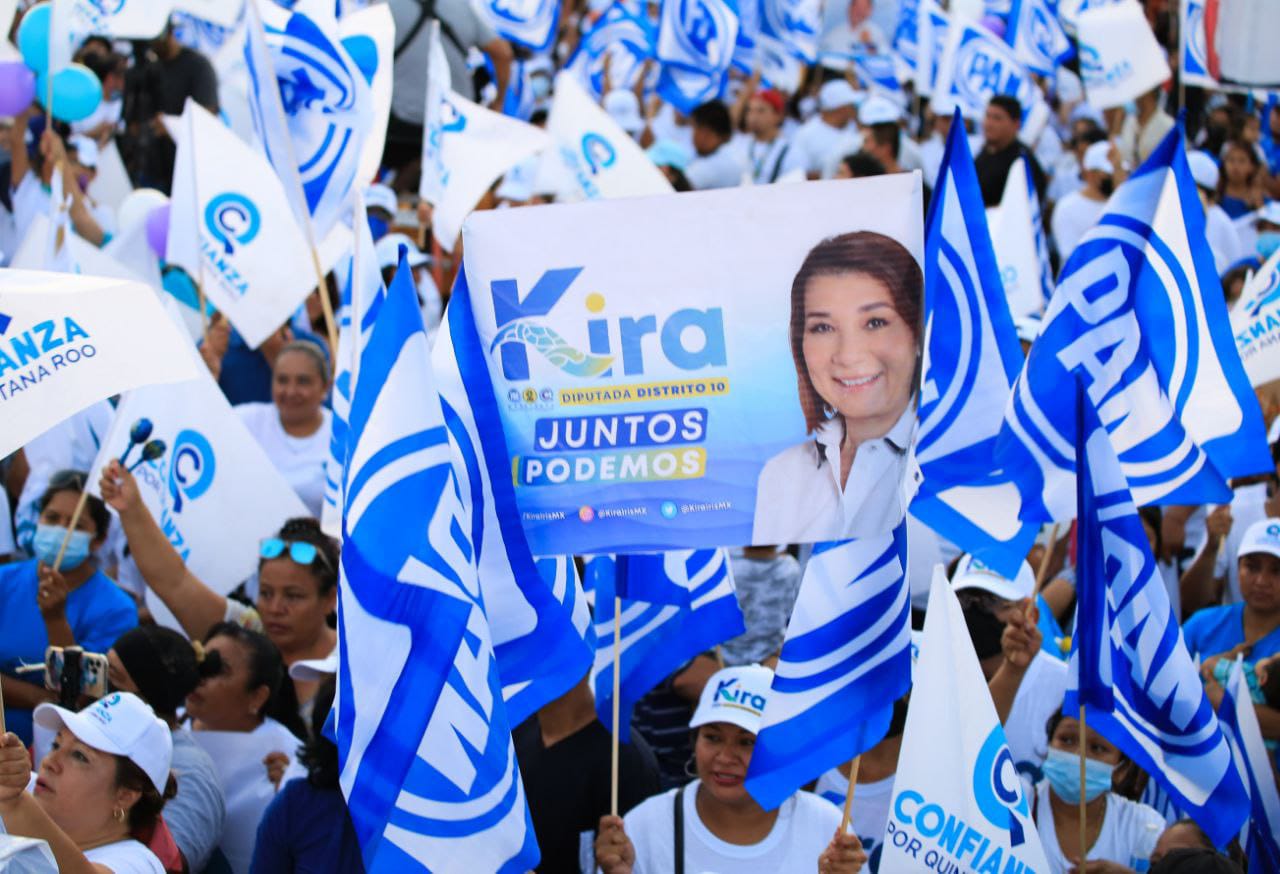 Ante más de 5 mil militantes y simpatizantes, Kira Iris estuvo respaldada por Marko Cortés, dirigente nacional del Partido Acción Nacional (PAN), por Laura Fernández, la candidata a la gubernatura de Quintana Roo, Lili Campos, alcaldesa de Solidaridad, Faustino Uicab, dirigente estatal, quienes se reunieron en la Plaza 28 de julio para refrendar su compromiso con la ciudadanía, sobre el cambio que ofrecen los gobiernos de la coalición “Va por Quintana Roo”.