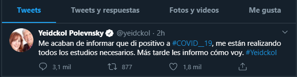 YEIDCKOL POLEVNSKY DIO POSITIVO A COVID-19