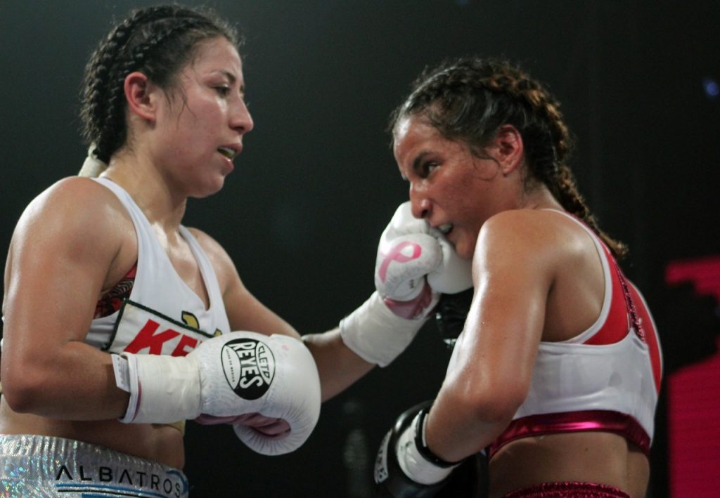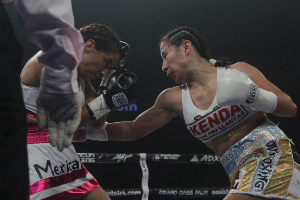 La joven peleadora de Ciudad Juárez se plantó a pelear de tú a tú con Yesenia, con quien intercambió “metralla” a lo largo de la contienda, sin importarle su condición de “foránea” o el apoyo del público para la peleadora local.