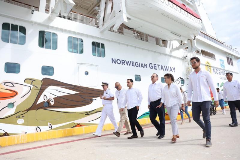 Yucatán, 16 diciembre; poderycritica.-Yucatán cada vez se consolida más como un destino atractivo en el turismo de cruceros y muestra de ello es la llegada del barco Norwegian Getaway de la naviera Norwegian Cruise Line, que por primera ocasión arribó a territorio yucateco, concretamente al Puerto de Progreso, fruto de la estrategia de gestión y promoción promovida por el Gobernador Mauricio Vila Dosal.