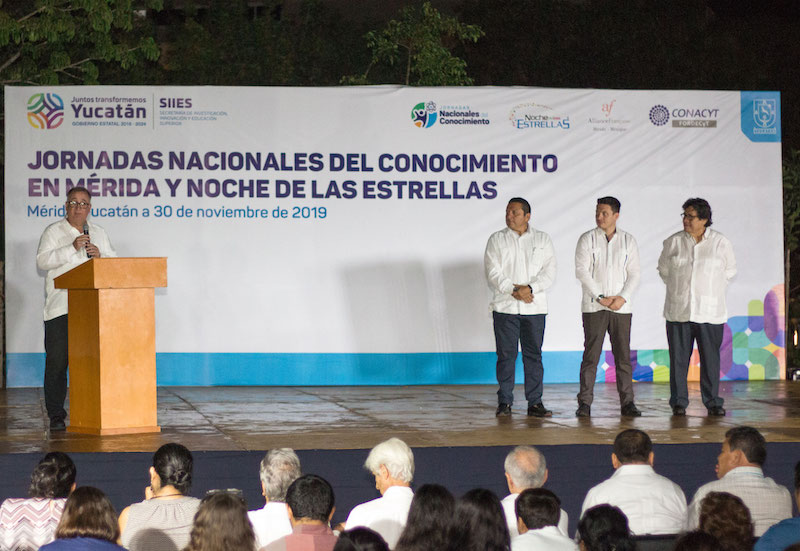 El Parque Científico Tecnológico (PCTY) albergó la ceremonia de clausura de este encuentro, que incluyó la tradicional «Noche de las estrellas» de la Alianza Francesa de Mérida. Ahí, Bernardo Cisneros Buenfil, titular de la Siies, celebró la importancia del desarrollo de estas actividades para generar una cultura que aprecie el conocimiento y, así, dirigir a niñas, niños y jóvenes yucatecos, hacia vocaciones en humanidades, ciencia y tecnología.