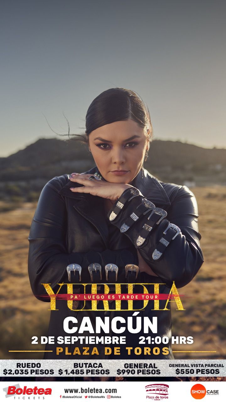 PODER Y CRÍTICA | REDACCIÓN | La cantante Yuridia se presenta en concierto en Cancún con “Pa’ luego es tarde tour”, el próximo 02 de septiembre en la Plaza de Toros y los boletos ya están a la venta a partir de hoy en Boletea.com