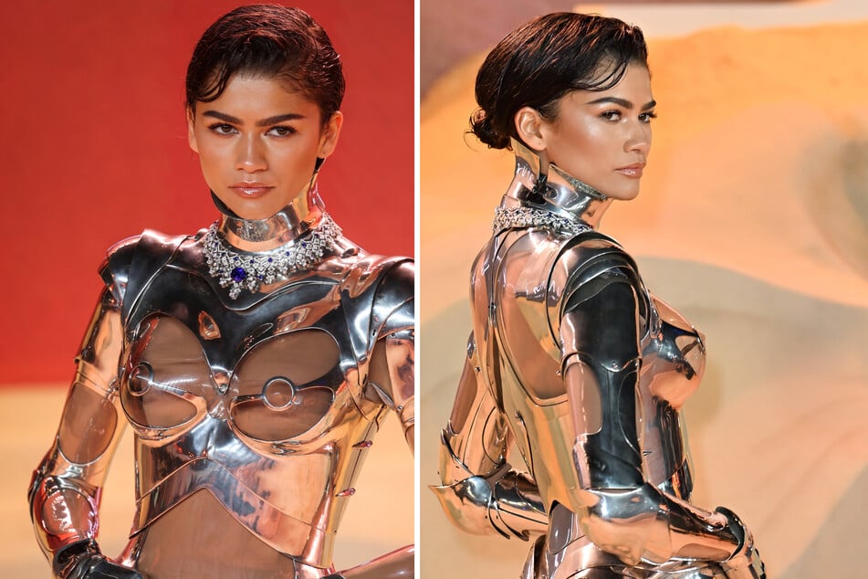 En México, la vimos vestir con atrevidos outfits de maxifalda y crop top en tonos tierra (o desérticos) a través de los que se expresaba algo de su personaje en la película: Chani. Ahora, la dupla conformada por Zendaya y Roach sorprenden con el look elegido para ella para asistir a la premier de la segunda parte de Duna en Londres: ¡un traje de robot!