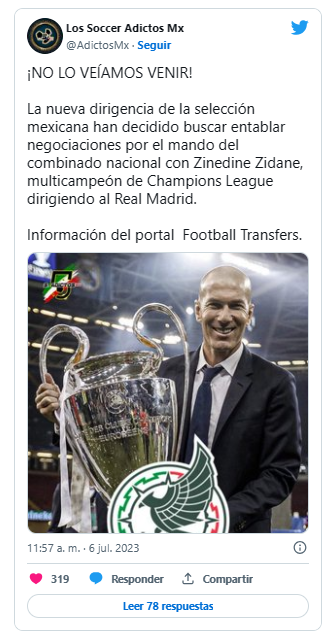 Cabe mencionar que, según fuentes cercanas al entorno Tricolor, Zidane habría rechazado una primera propuesta que le hizo la Federación Mexicana de Futbol. Así mismo, se supo, el exfutbolista francés también fue sondeado para encargarse de la Selección de Futbol de Estados Unidos.