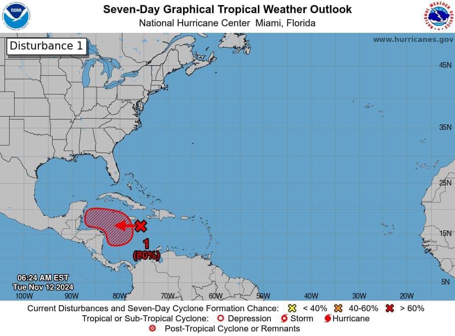 PODER Y CRÍTICA | REDACCIÓN | Este martes, autoridades en Quintana Roo informaron sobre el seguimiento intensivo a una zona de baja presión en el centro del mar Caribe, la cual aumentó su probabilidad de desarrollo ciclónico al 80% en los próximos siete días.