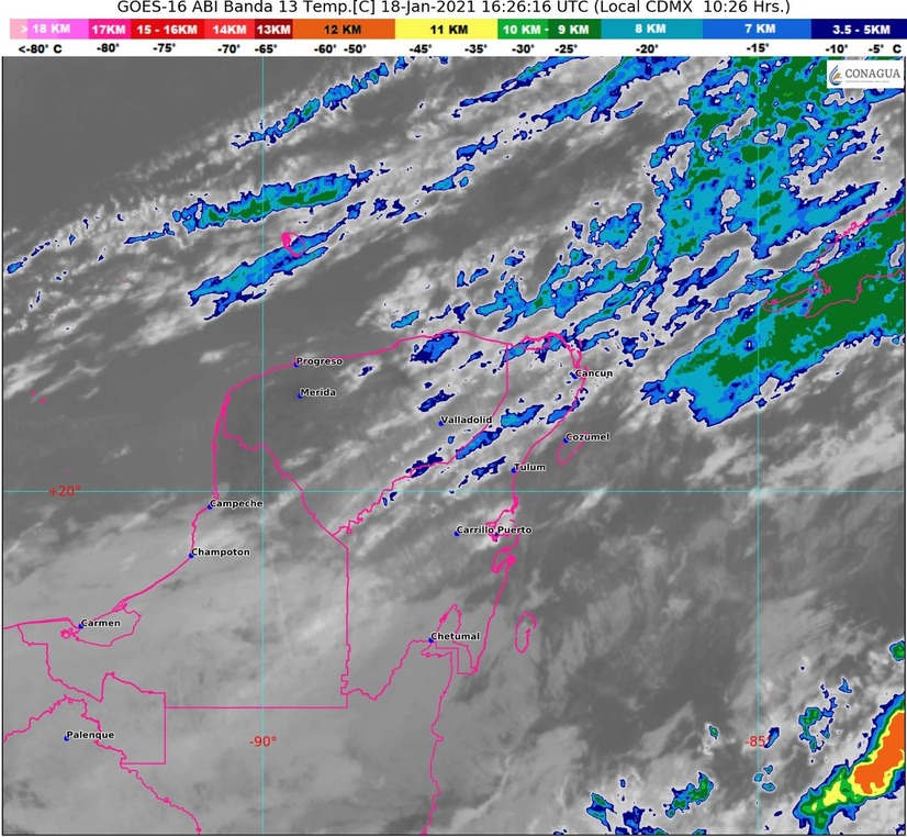 Martínez Ortega dijo que el reporte de temperaturas mínimas de las estaciones automáticas y convencionales de las 09:00 horas del 17/01/2021 a las 09:00 horas del 18/01/2021, indicó que el termómetro bajó a 14 y 14.2 grados en José María Morelos y Felipe Carrillo Puerto respectivamente.